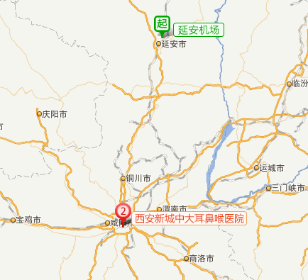 从延安机场步行至高新二路站,乘坐10路上行, 经过13站在北新街站下车。步行约100米至西安新城中大耳鼻喉医院。